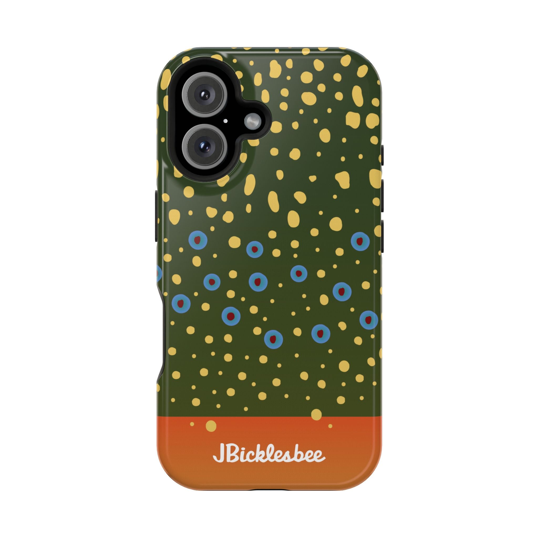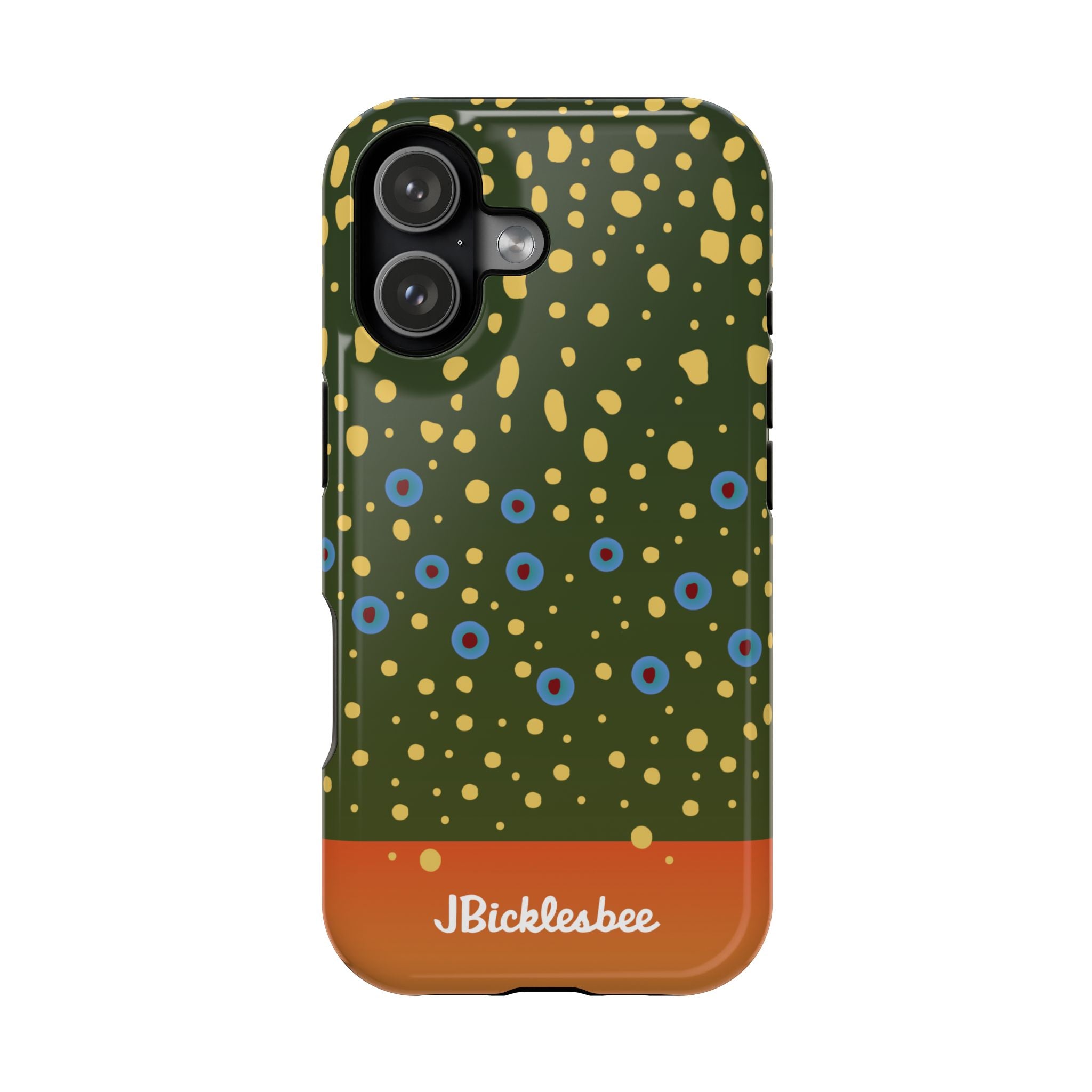 Introducing JBicklesbee's Outdoorsman Series iPhone cases with MagSafe, nature-inspired designs, and eco-friendly manufacturing. Phone cases like Blaze Orange Hunter, and we've got designs for fisherman including Trout Skins. Ideal for modern lovers of the great outdoors.