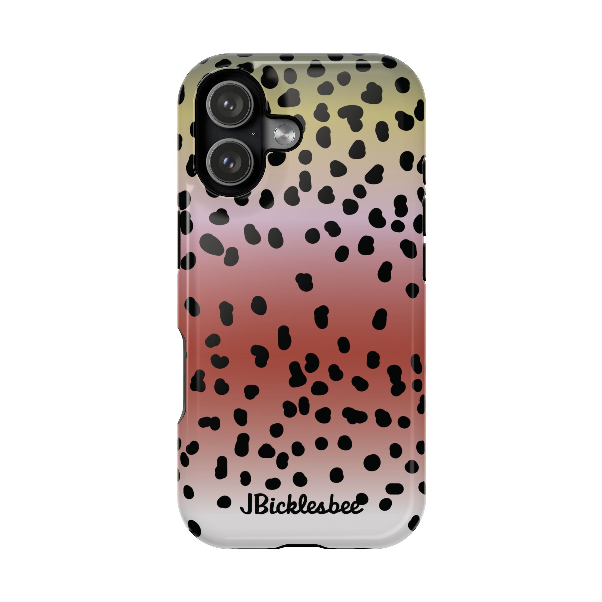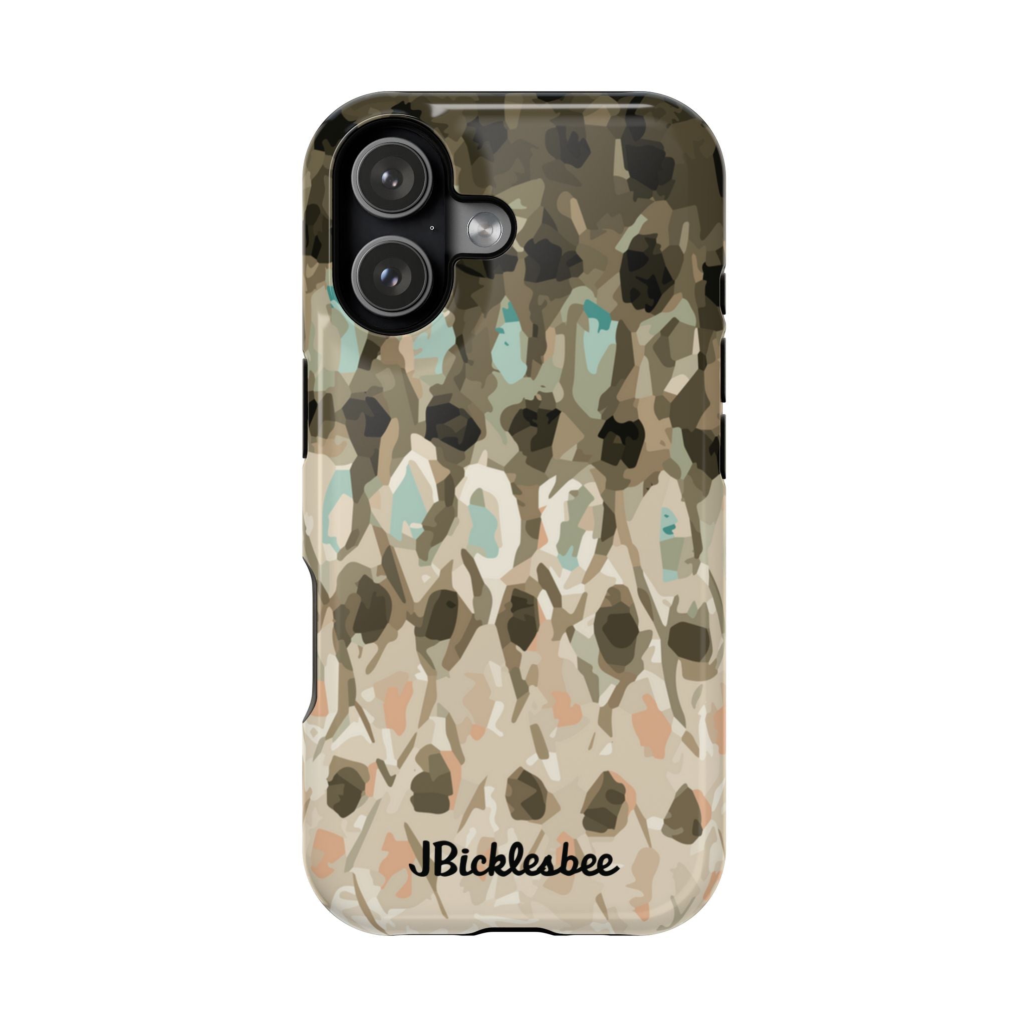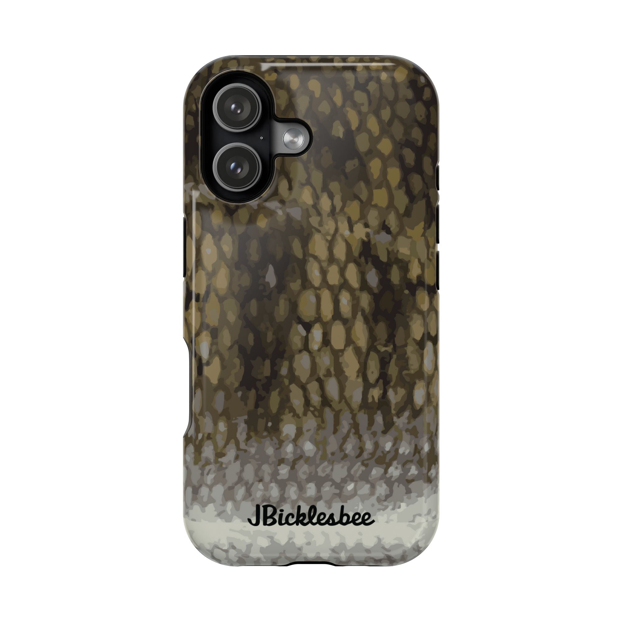 JBicklesbee’s MagSafe Tough iPhone Fishing Phone Cases are perfect for today's fishing enthusiasts. These MagSafe tough cases are dual-layered, impact-resistant, MagSafe wireless charger compatible, and available in a gloss or matte finish. They also feature slight bezels that protect the front screen and camera. The MagSafe magnet ensures charging alignment and allows for other accessories to clip to the magnet. Plus, we make them with eco-friendly practices, so you can feel good about helping the planet too!