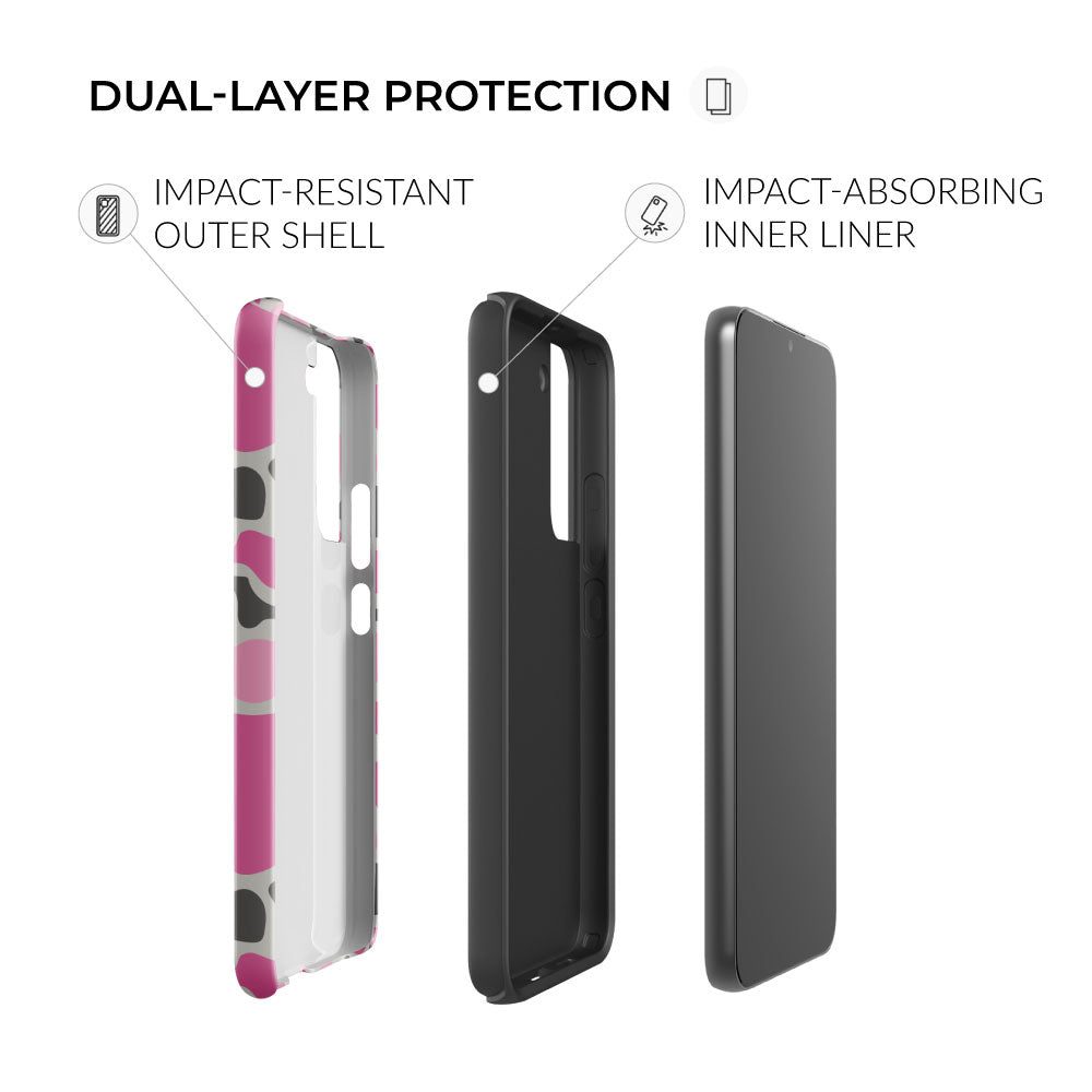 Customize your Samsung Galaxy with our high-quality protective phone cases. Each case boasts dual layers for enhanced durability and defense. The outer polycarbonate shell ensures resilience against everyday impacts. The inner TPU silicone liner absorbs shock from drops. Choose between glossy or matte finishes.